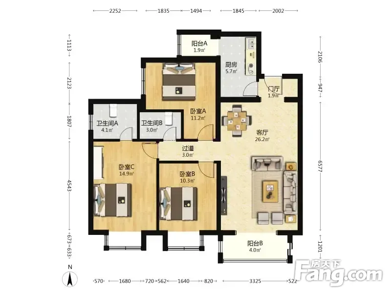3室2厅1卫