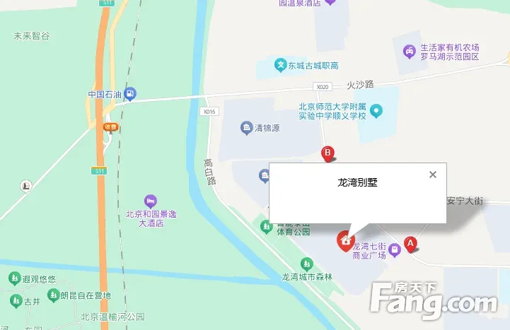 小独栋,位置好,总价低 小区介绍 龙湾别墅位于顺义区温榆河高尚别墅区内,其总用地面积1800亩,其中建设用地1000亩,交通十分 便利,东距京顺路3公里,西距京承高速后沙峪出口2.5公里,与北京市区联系极为快捷,到首都机场 也仅15分。其西南、东南侧均是200米宽绿化带,西南侧依傍温榆河,有长达1800米的河岸景 观线,环境优美,空气清新,小区自带会所,幼儿园,环境绿化很高,周边配套齐全,顺义高档别墅 区,身份的象征 周边配套 欧陆时尚购物、中粮祥云小镇、永辉、家乐福、物美、华联精品、奥莱、婕妮璐、京客隆,商银行、 中国银行、北京银行、建设银行、交通银行等。 交通出行 东距京顺路3公里,3公里到地铁15号线国展站,942公交车直达东直门,距京承高速2.5公里。