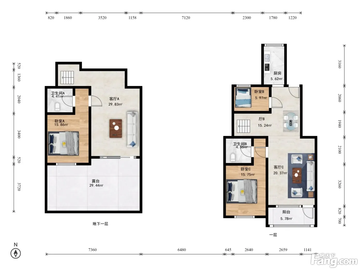 户型介绍:面积171平米,南北通透,全明地下跃层,3室3厅3卫,主次卧客厅朝南,前后无遮挡