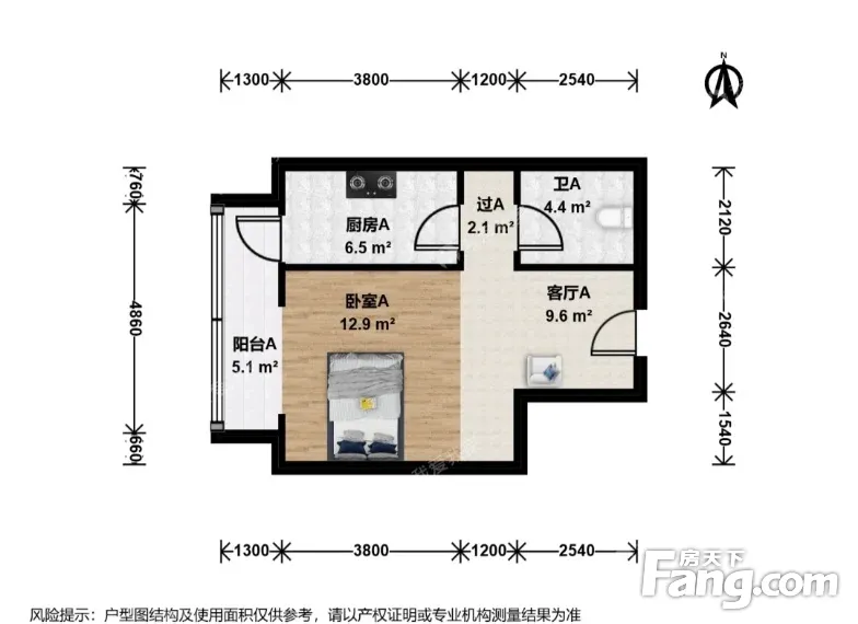 此房户型方正 板楼 公摊小 一层 一居室 布局合理 无浪费面积 采光无遮挡