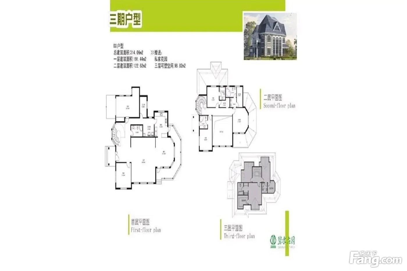 三期D户型精装房,占地1300平,南向集中草坪