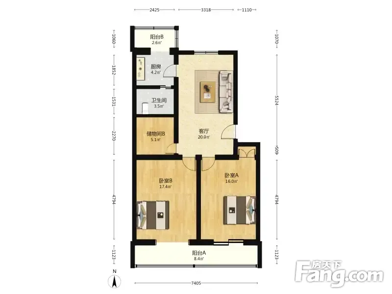 户型齐全,主打客厅朝南,双阳台二居