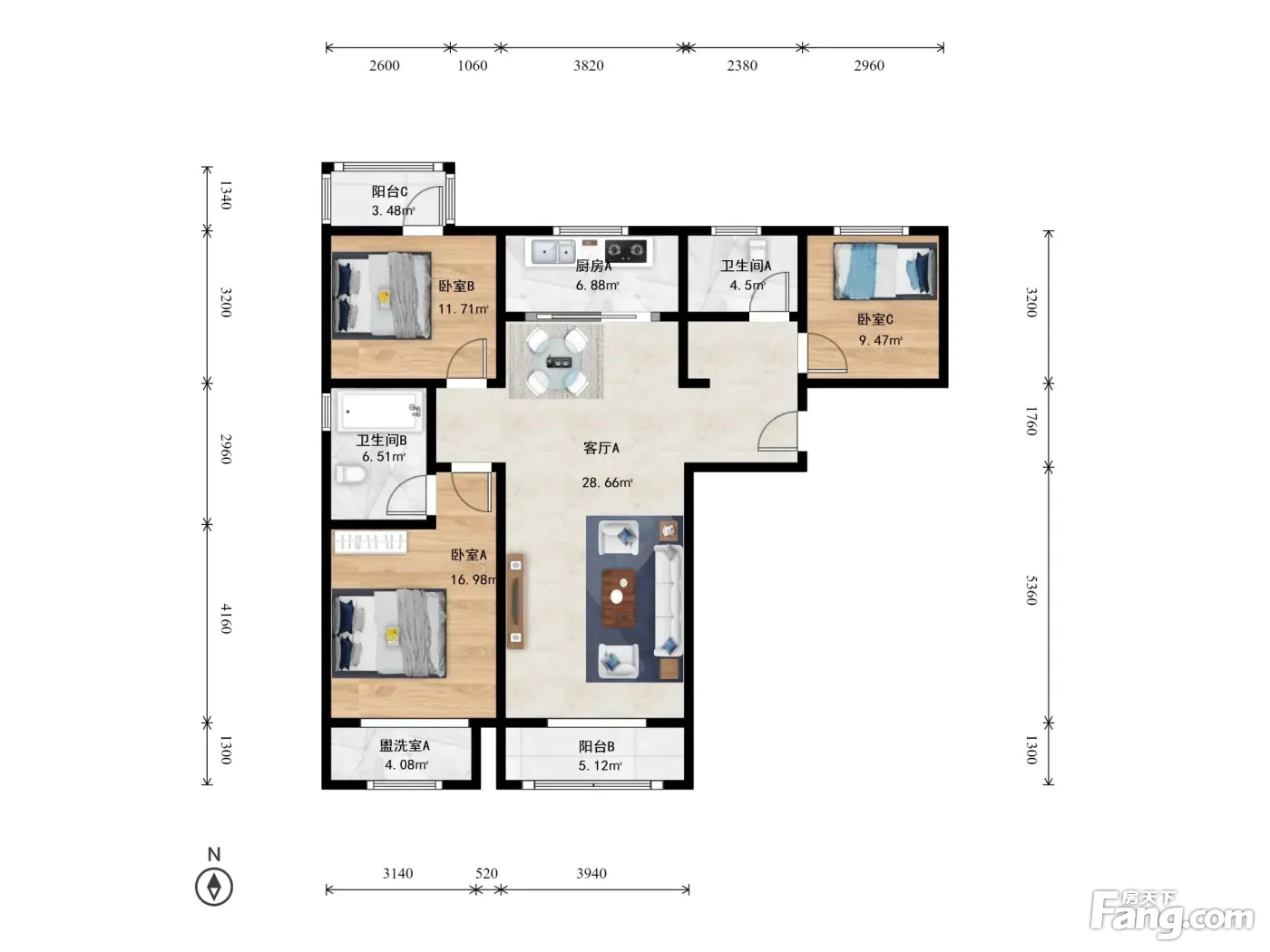 3室1厅2卫