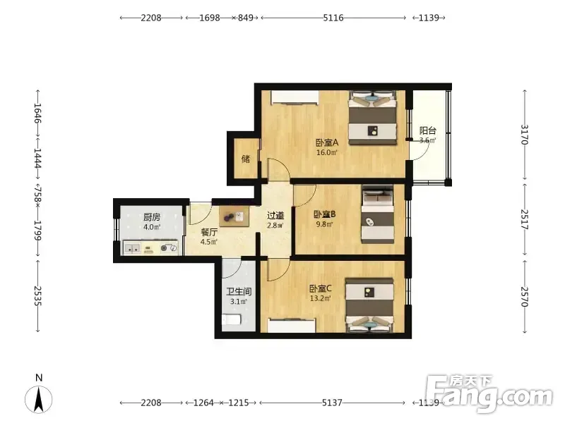 钟界沸0.5 安外东河沿 3室1厅 75.56平