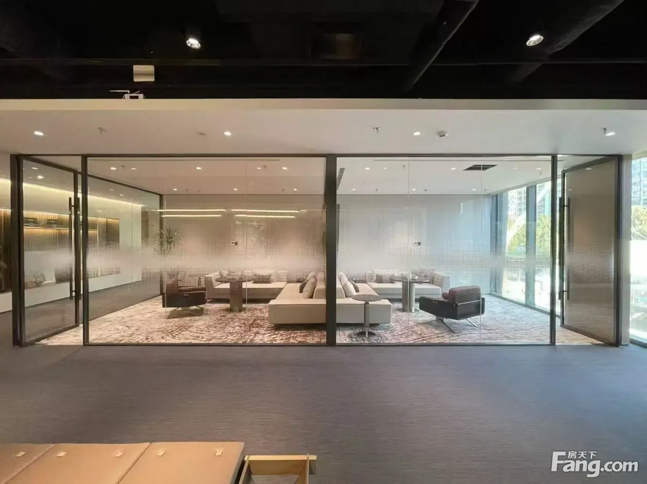 70°环幕采光 沉浸式绿意高奢大堂 双层大堂,设计独辟蹊径,将户外绿意引入室内,浑然一体,打造绿色、社交感强的开放式大堂,实现更灵活、惬意的氛围.高实用率 全景采光无柱奢阔空间进深精准控制在12-