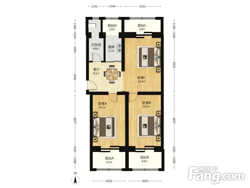 3室1厅1卫