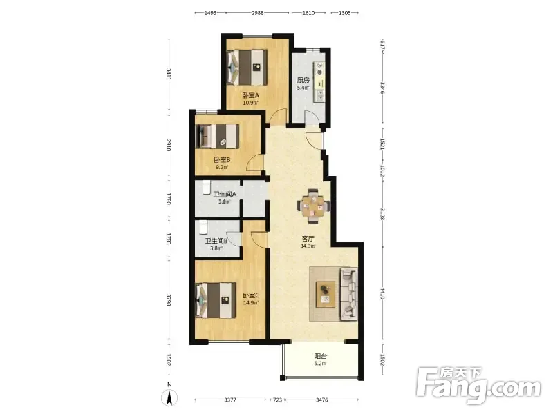 3室2厅1卫