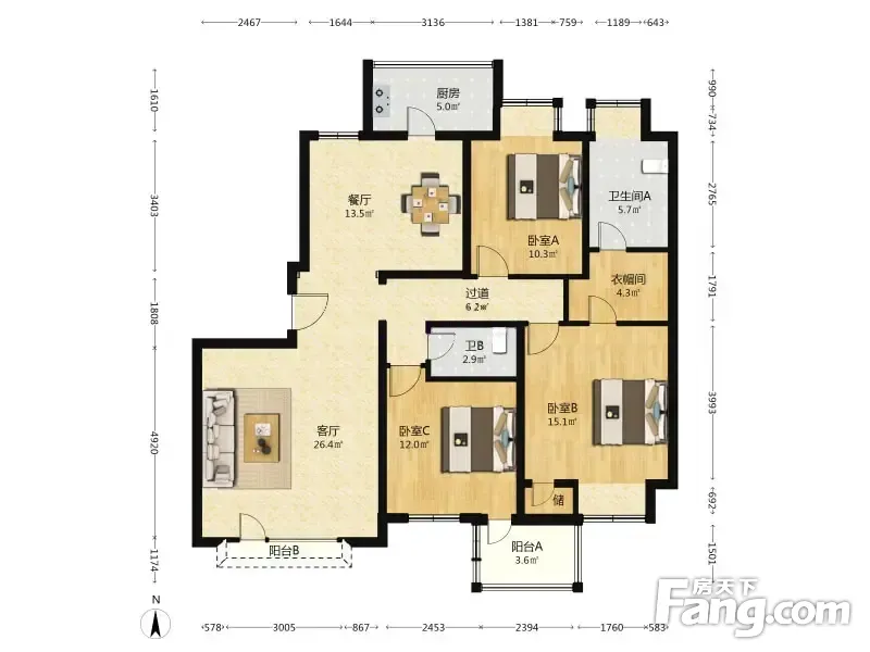 随园 3室2厅 140.75平