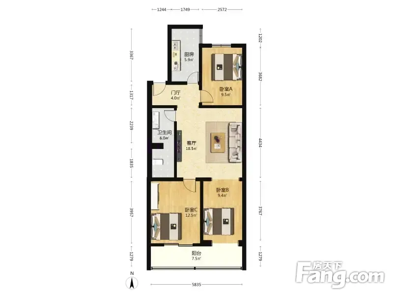 钟界沸0.5 六铺炕三区 3室1厅 96.7平