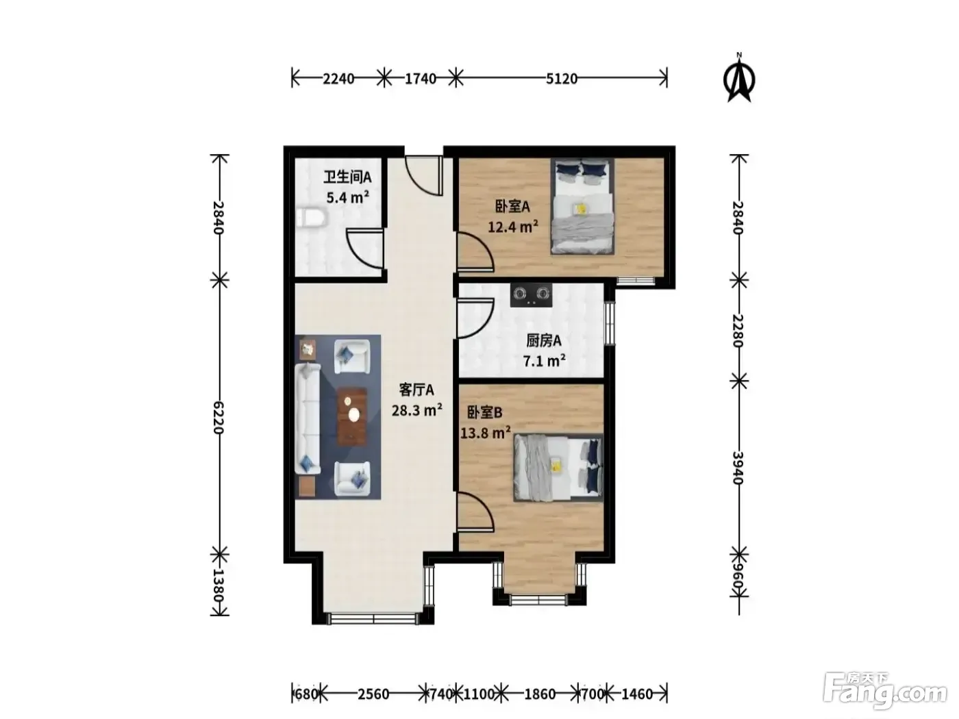 户型齐全,主打户型方正,明卫,明厨,客厅朝南二居