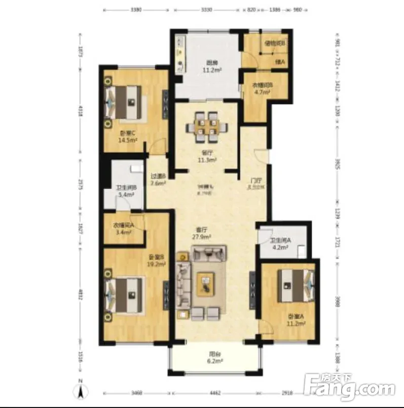 户型齐全,主打独立衣帽间,双阳台三居