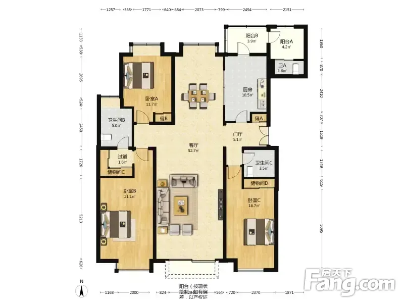 户型齐全,主打户型方正,明卫,独立衣帽间,双卧朝南,主卧朝南三居