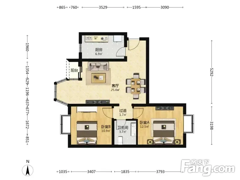 珠江逸景 2室1厅 90.5平