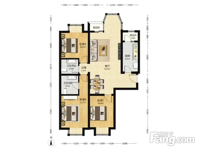 3室2厅1卫