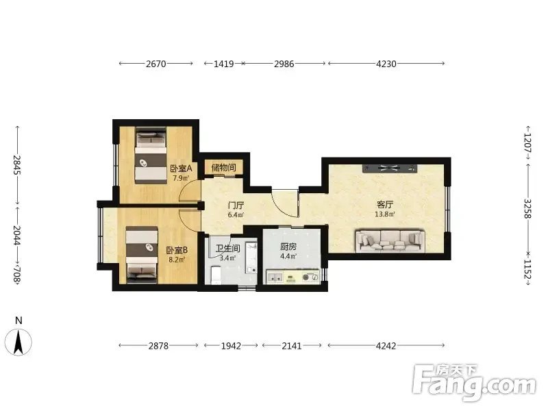 亦庄橡树湾 2室1厅 79.59平