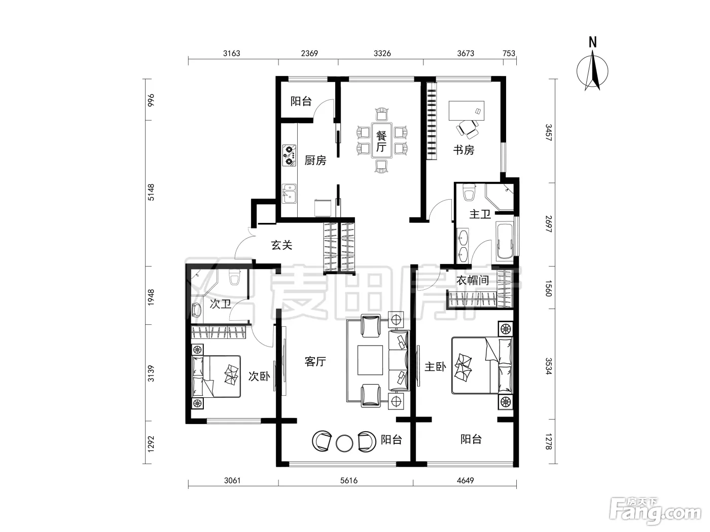户型齐全,主打户型方正,独立衣帽间,明卫三居