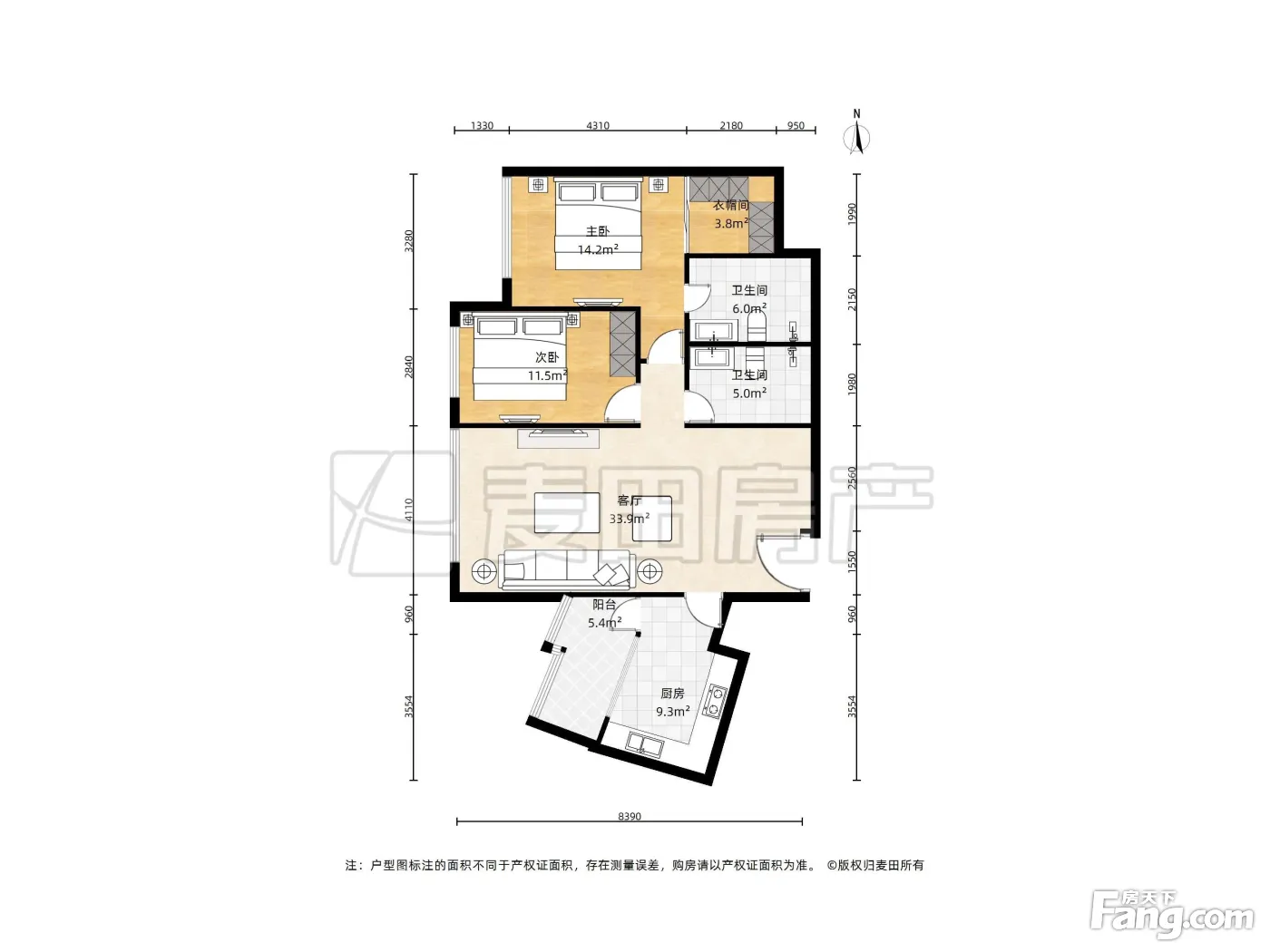 户型齐全,主打户型方正,明卫,客厅朝南,主卧朝南二居
