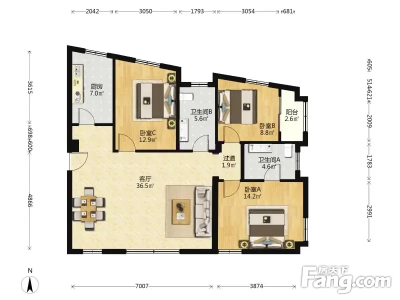 户型齐全,主打户型方正,明卫,明厨,客厅朝南三居