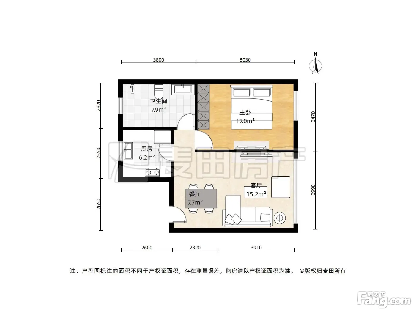 户型齐全,主打明厨,客厅朝南,主卧朝南二居
