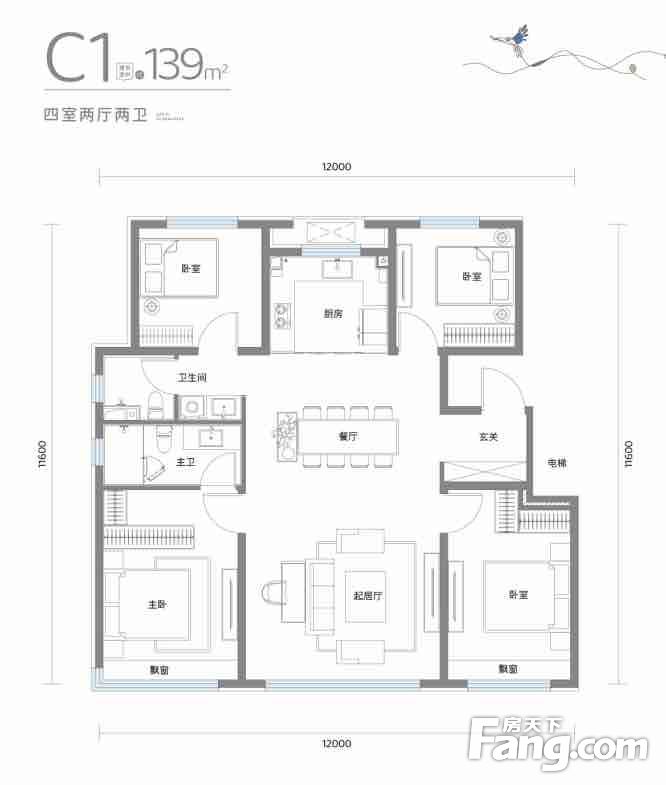 户型齐全,主打采光充足,南北通透,全明格局,户型方正四居