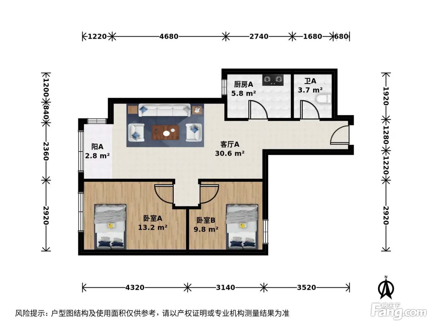 户型齐全,主打明厨,客厅朝南二居