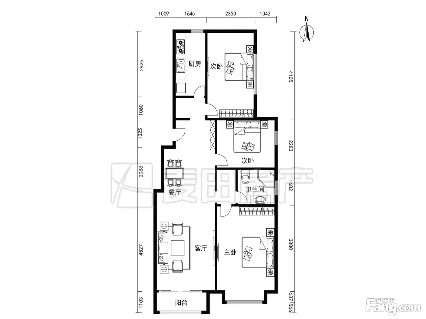 户型齐全,主打南北通透,主卧带卫,干湿分离三居