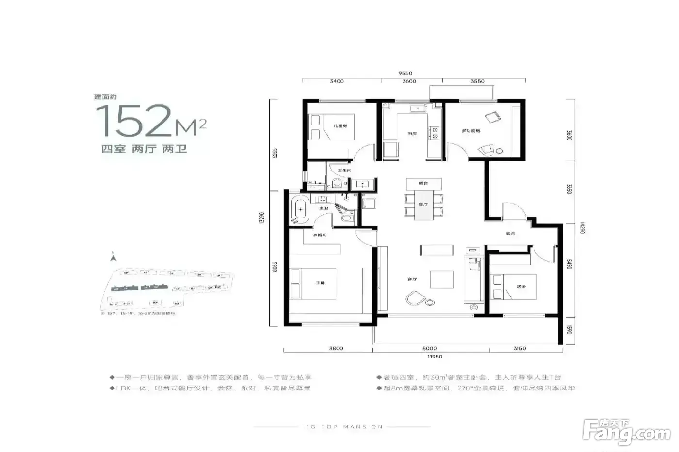 璟上兰园户型主要有120平-152平的南北通透,客厅朝南的四居 、105平-105平的南北通透,客厅朝南的三居 。