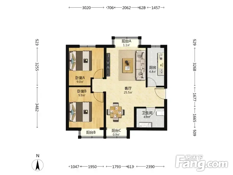 东亚瑞晶苑 2室1厅 79.03平
