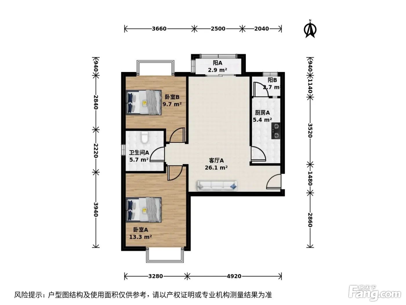 户型齐全,主打户型方正,明厨,主卧朝南二居
