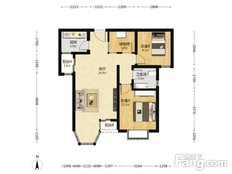合生世界村 2室1厅 93.83平