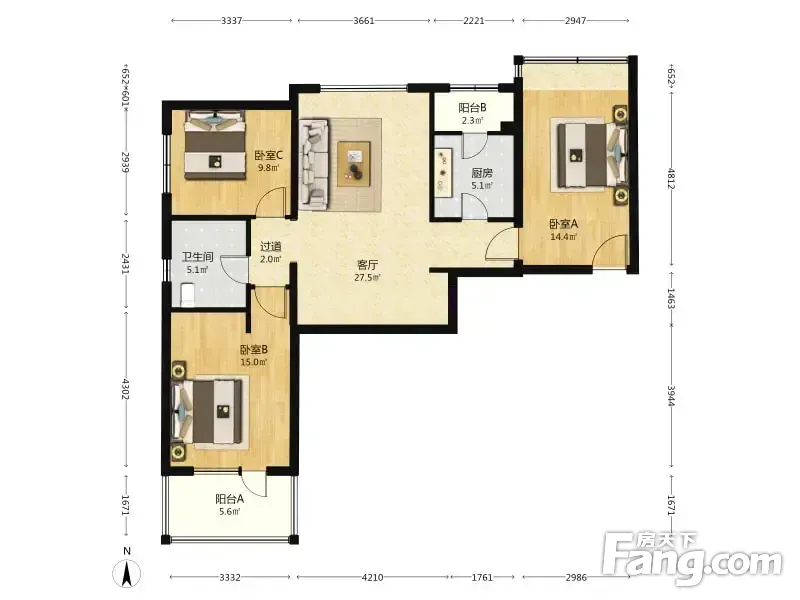 富力丹麦小镇D区 3室1厅 102.87平