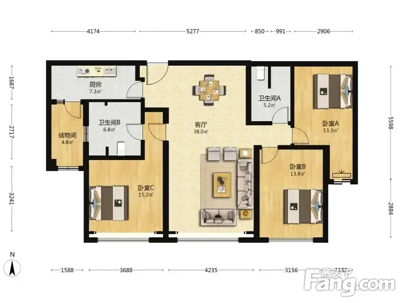 户型齐全,主打南北通透,全明格局三居