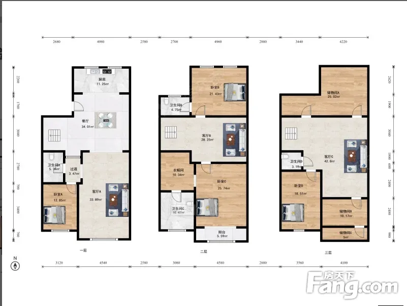 户型齐全,主打南北通透,全明格局,户型方正,动静分离,采光充足四居