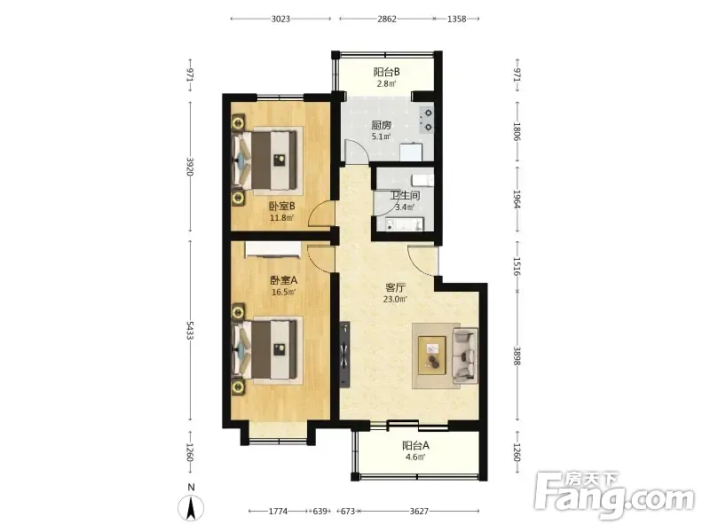 户型齐全,主打明厨,双卧朝南二居
