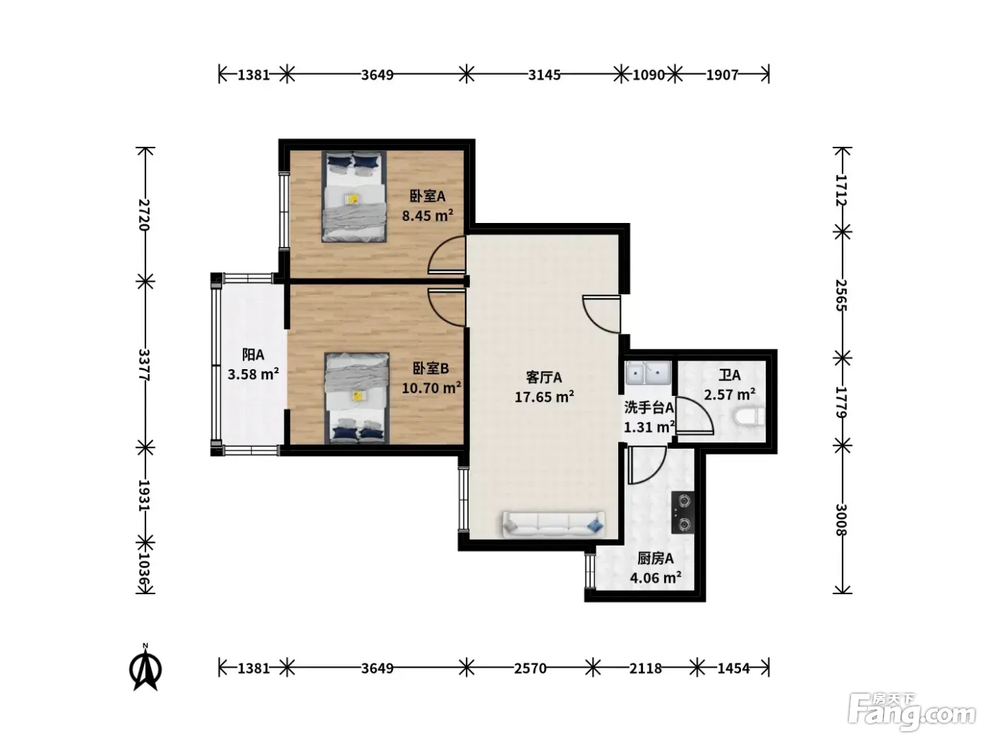 户型齐全,主打客厅朝南二居