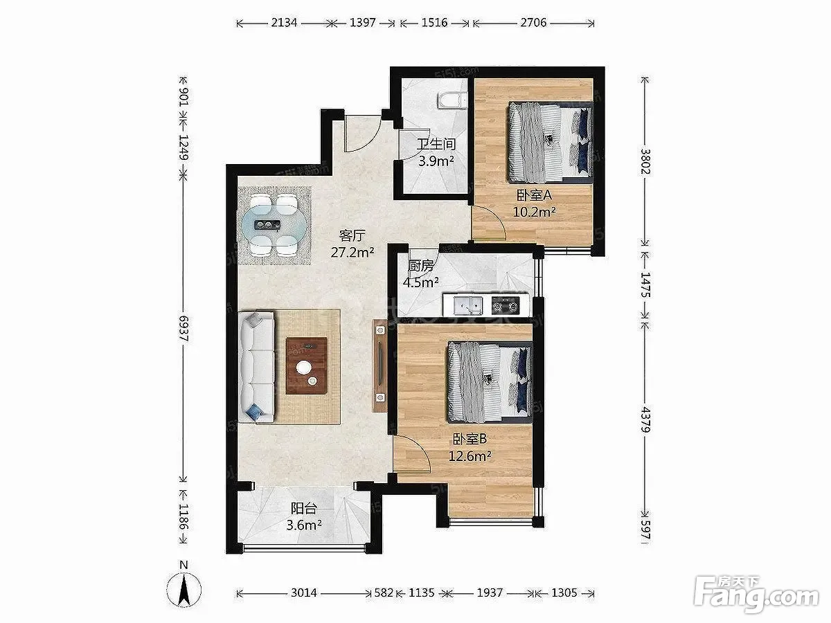 户型齐全,主打明厨,双卧朝南,主卧朝南二居