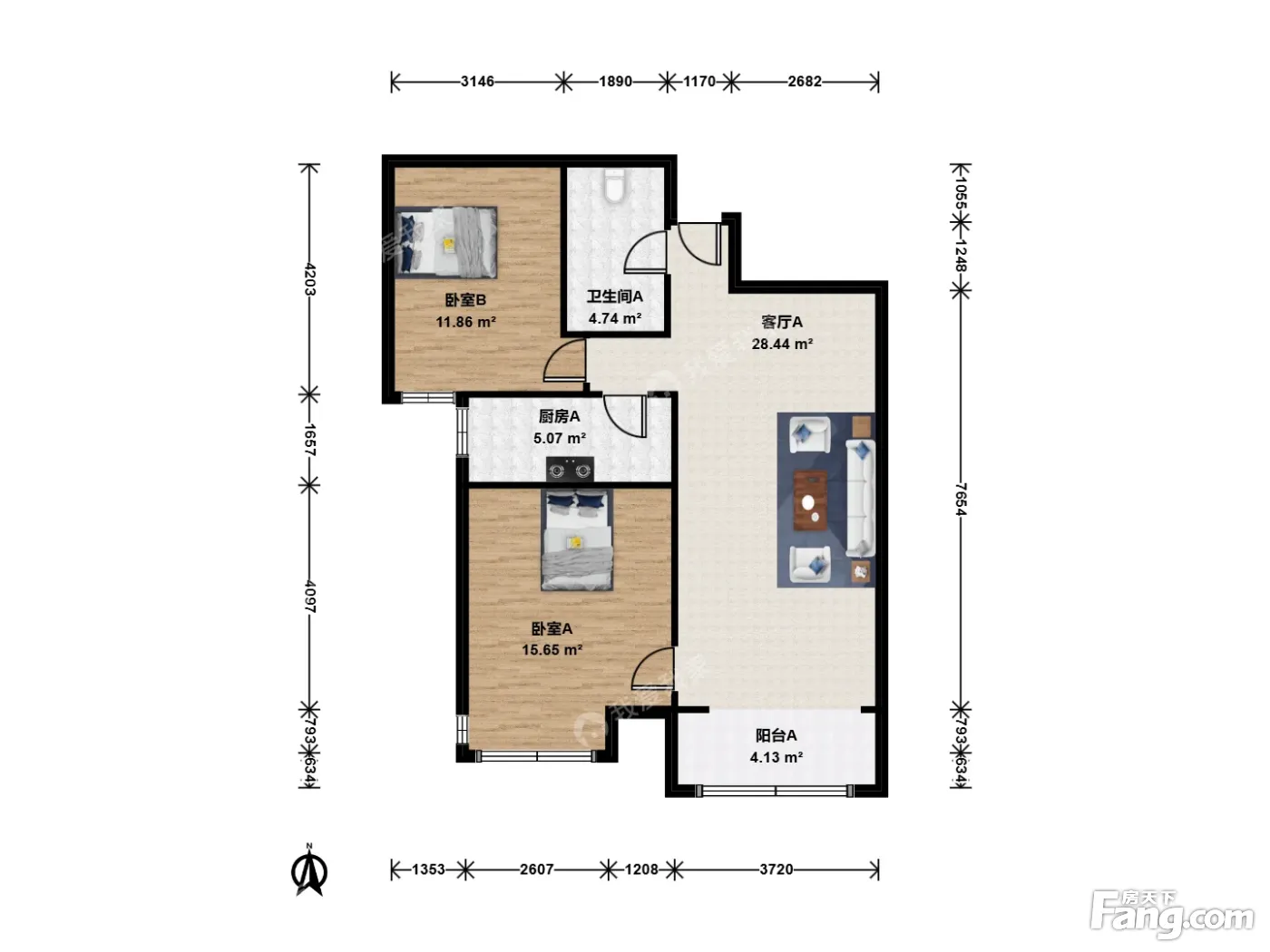 户型齐全,主打明厨,双卧朝南,主卧朝南二居