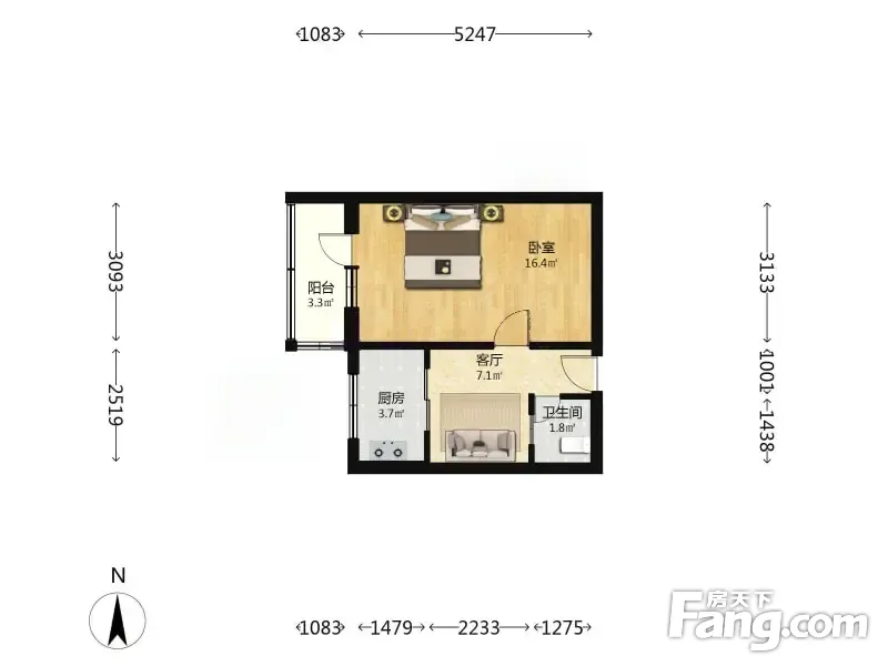 • 1室1厅1卫