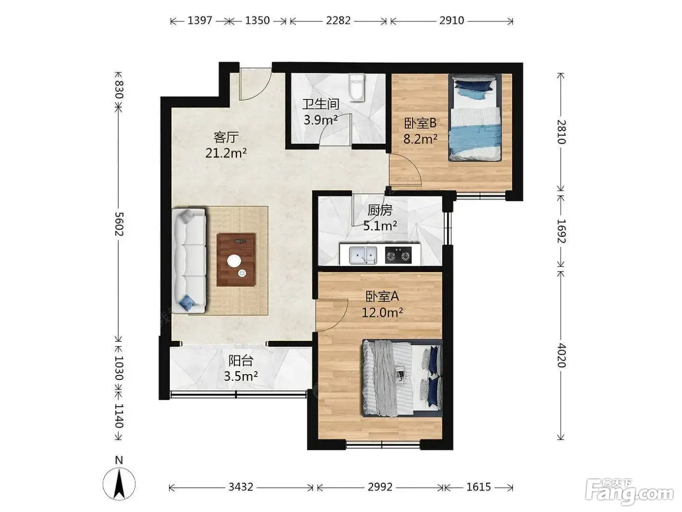 户型齐全,主打明厨,双卧朝南二居