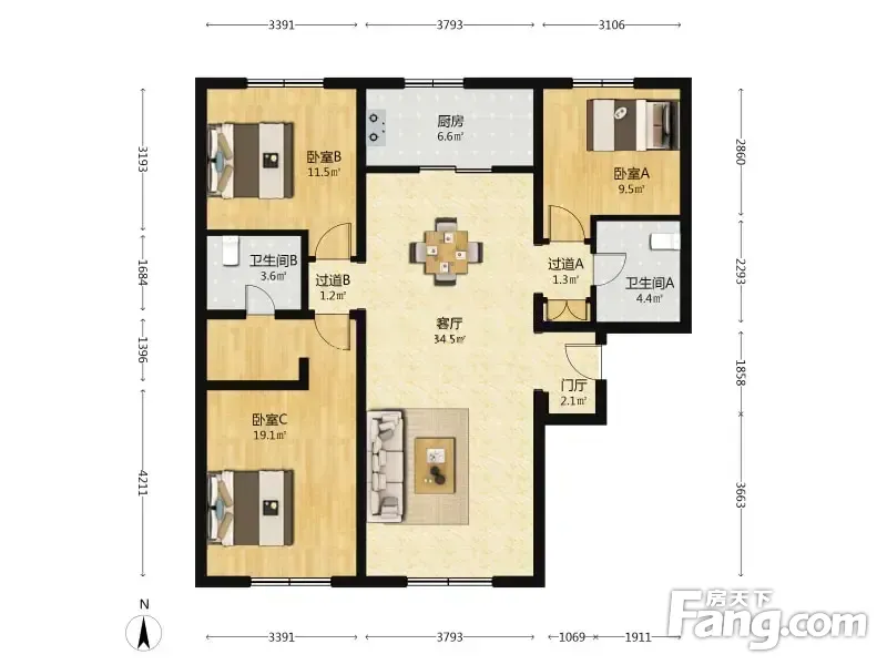 金隅万科城二期 3室1厅 123.46平