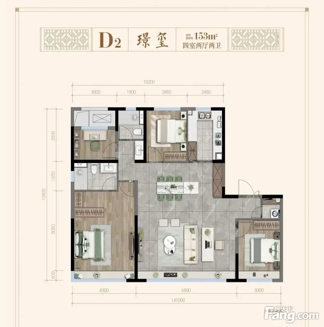 房屋拥有相对宽松的尺寸,布局通透,动静分离,设计豪华。