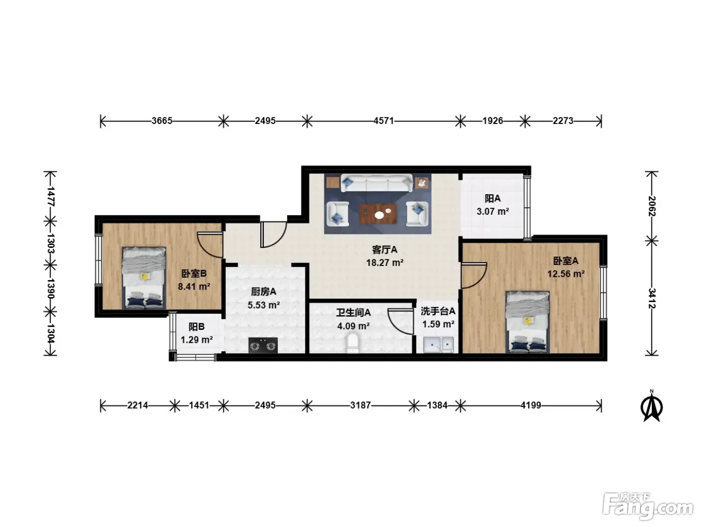 户型齐全,主打独立衣帽间,客厅朝南二居