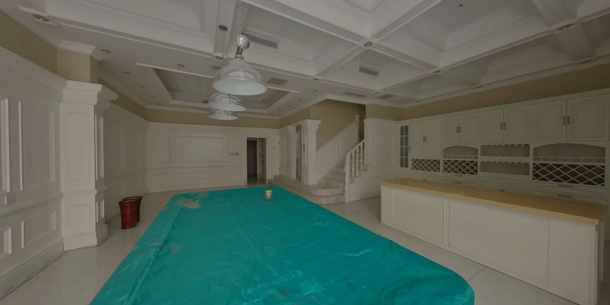 户型介绍:房本面积为345.76平米,带电梯,南北通透,卧室套房设计,带三个车位。