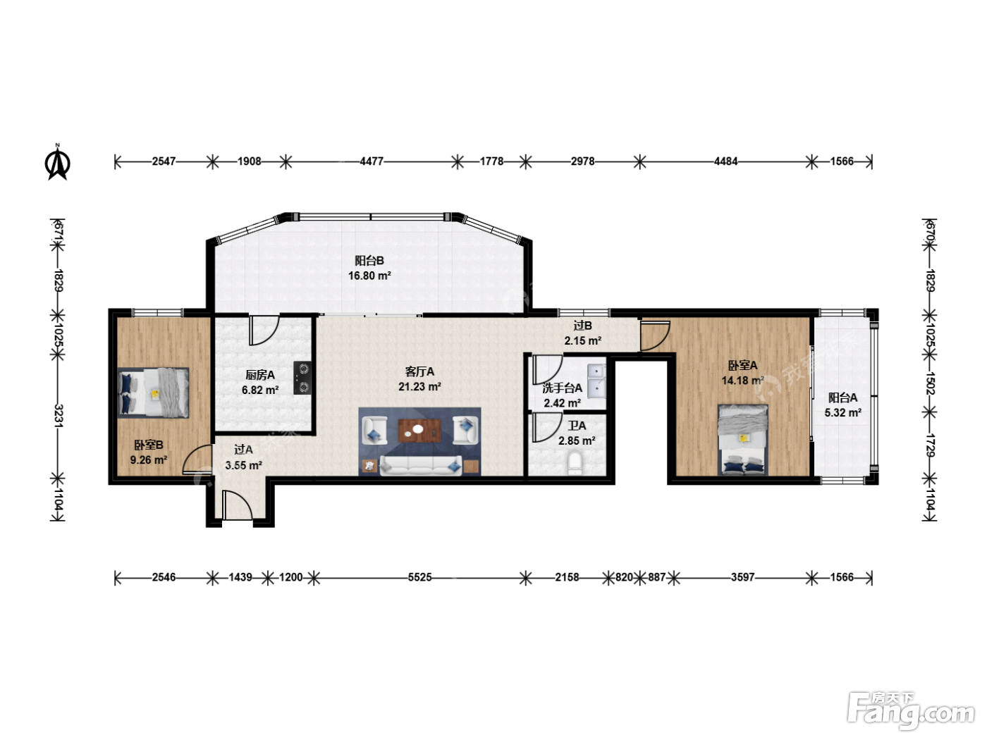 户型齐全,主打户型方正,明厨,明卫,双卧朝南,主卧朝南二居