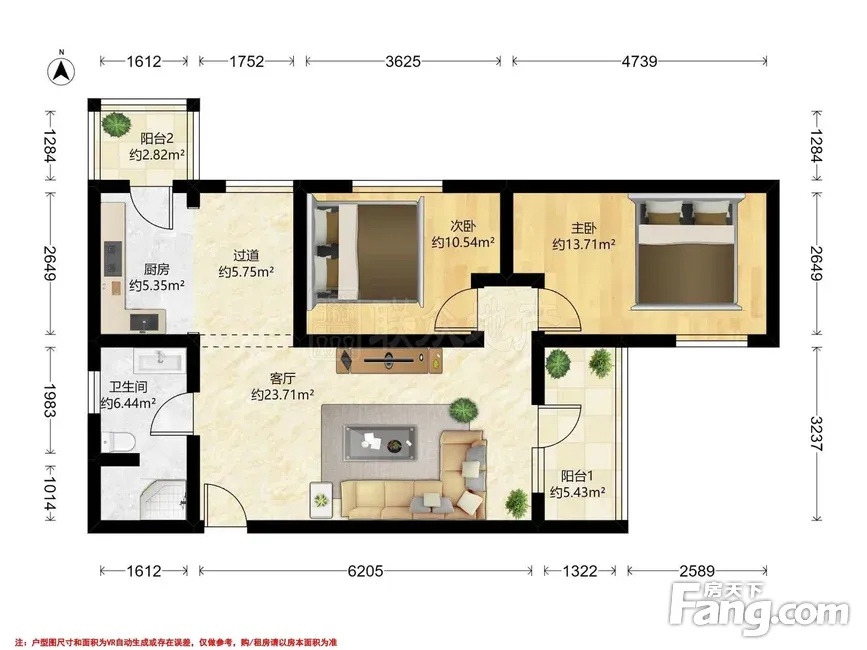 户型齐全,主打双阳台,主卧朝南二居