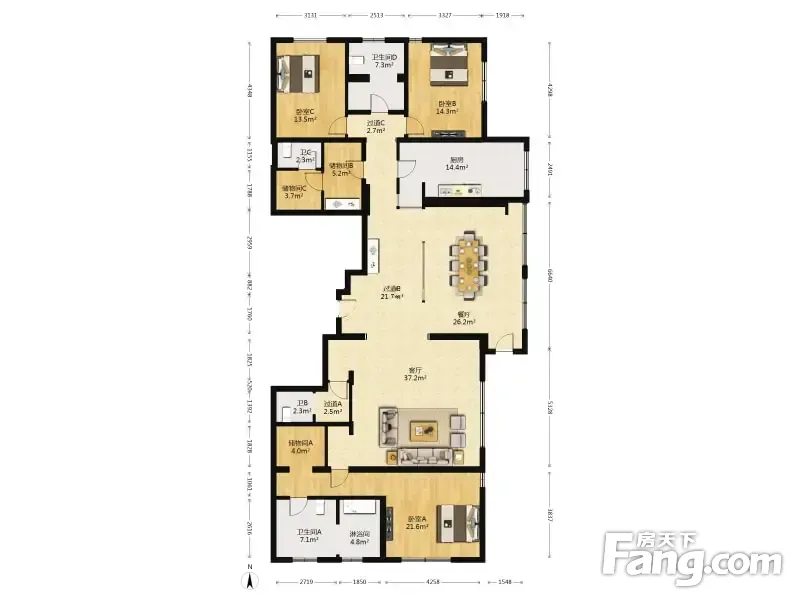 房屋拥有相对宽松的尺寸,布局通透,动静分离,设计豪华