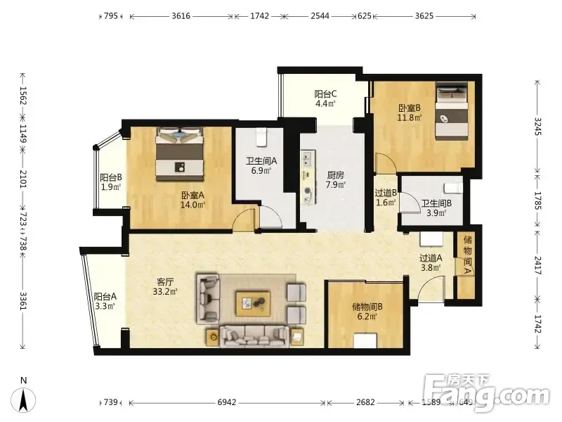 户型齐全,主打三居