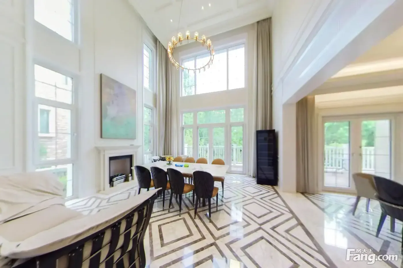 客厅东南挑高7米,2019年花2000万装修内外,南边临水系