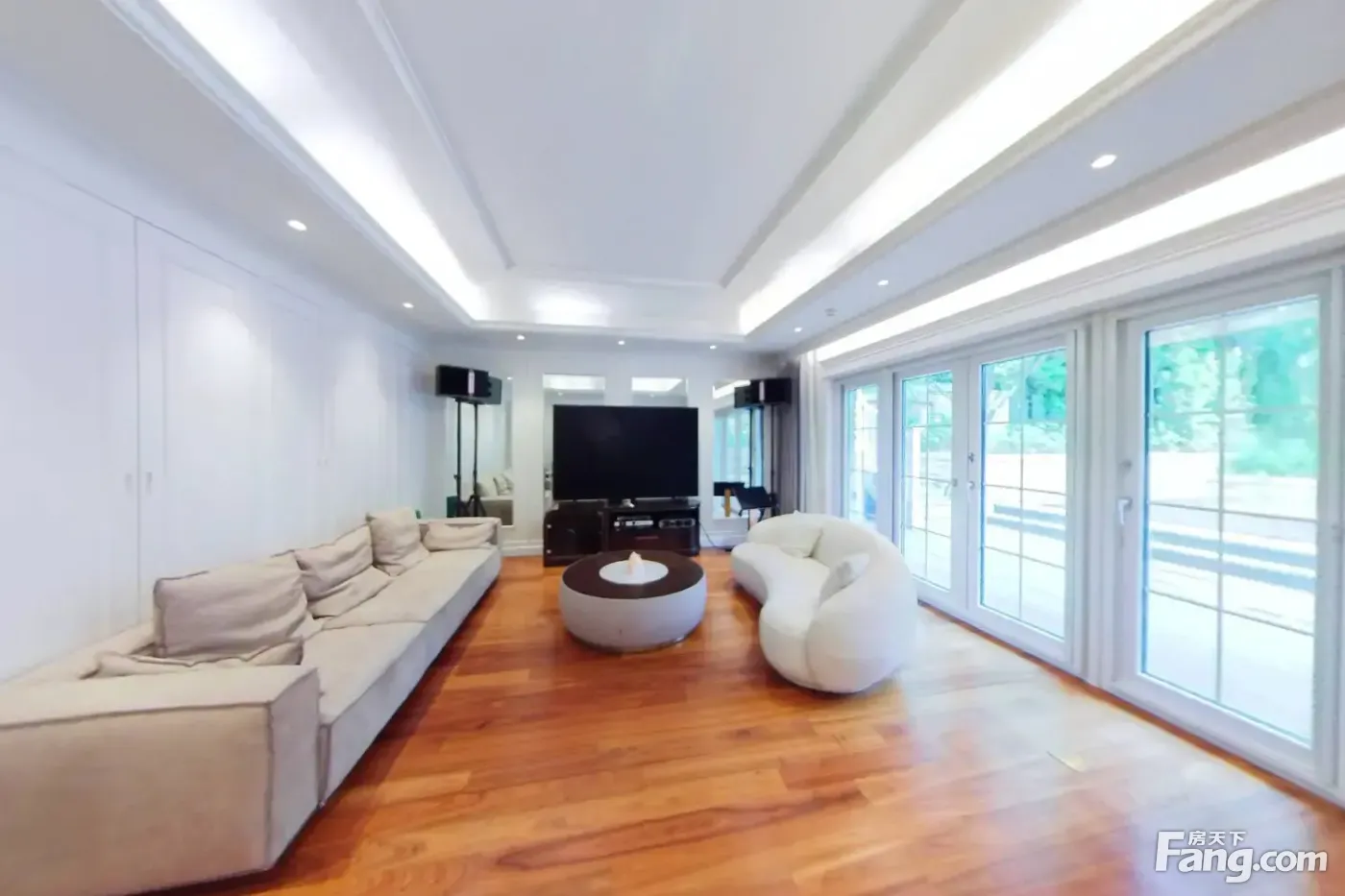 户型描述 户型方正,坐北朝南。北入户,南客厅。 前二后三全明格局。车库加前院可停3辆车。 一层:客厅东南向挑高7米,南向餐厅、西厨,东北向大次卧。 二层:南向大主卧套房,北向双次卧全套房。 休闲设备层:南向休闲活动室、南向小次卧。 景观特点 ①独栋别墅,四面采光,春赏百花秋望月,夏观烟雨冬听雪。 ②中间位置,南临社区内水系。四周花草树木包围,尽享四季美景变幻。 装修特点 1、2019年精装修花费2000万,重新做的外立面、门窗、屋顶和室内装修,白色和浅米色系,清爽怡人。 2、客厅、餐厅等地面大理石; 3、卧室、休闲区等地面实木地板。 保养状况 2023年7月租户入住,租户有保姆打理,保养新。