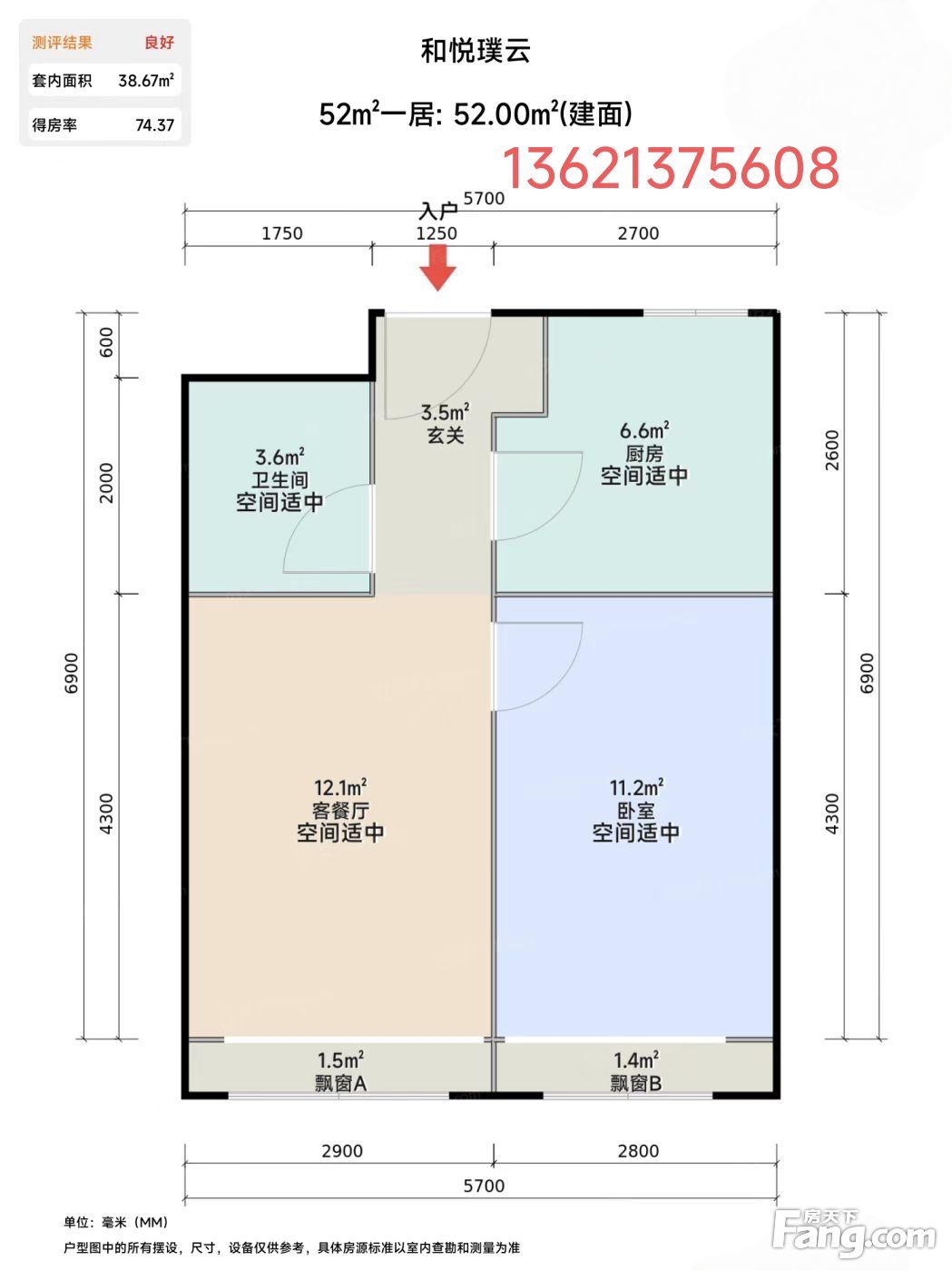 *获取完整户型报告,同时会有免费语音讲解服务